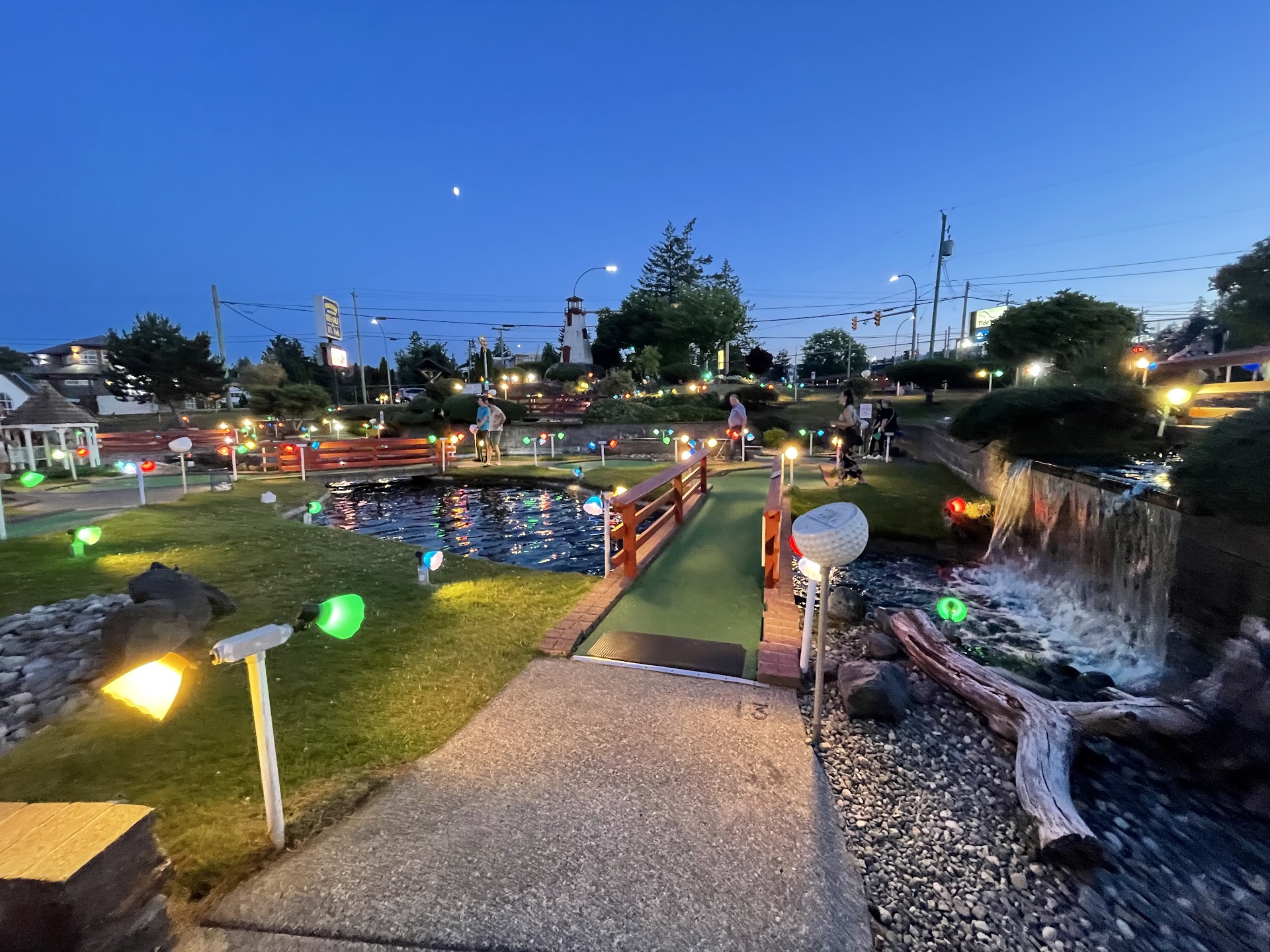 I've been visiting this place ever since it first opened when I was a young child. now bringing my own kids, it feels unwelcoming inside like you shouldn't have your kids there. The arcade is also pretty lacklustre these days. Half he machines were broken but we managed to catch a day where the candy machine had a glitch, and it played for free Infinitely. We got lots of candy. Quite honestly, I think the bumper boats were the best part because the kids soaked the adults watching. The girl running it was really nice. She invited us in to watch so we got drenched. I had so much fun. It was a really hot day. So it was the perfect break in between our rounds of golf. The course was packed! There was 6 groups ahead of us so it took forever to complete 1 round. So yes, I absolutely recommend doing the boats as a break. We saw they sold ice cream. There was a counter inside for a cafe but it was closed. On a really hot day, I was surprised to see no food or drinks available either. Although it's no longer what it once was, with the right group, a great time can still be had. There was 8 of us in total. This is still our meet up place everytime we fly...