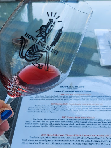 Read moreAs wine virgins from Ontario, we were surprised when we were told we needed to Visit Howling Bluff winery in the area known as the Naramata wine Bench from some long time friends from Ontario. We planned a special trip for our 20th anniversary and with No background / knowledge in wine attempted to look like we knew what we were talking about. We visited on a Sunday and Front of house Mel V. and her special assistant Bubbles made our first time magical, between the different classes of wine and the majestic views of the lake and mountains made our experience special, we spent most of the day enjoying the wine, the vineyard, and the views. We were even blessed to be able to meet Luke the Vinyard owner / wine producer and hear his story about the go go life of a businessman with the heart of a wine maker and how he was able to bring his dreams to life for his family and himself. If you are going to be anywhere near the Wine Bench or like us Need to visit this magical Canadian Jewel, Howling Bluff needs to be on your...