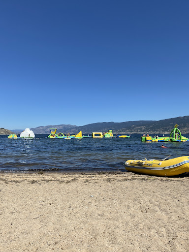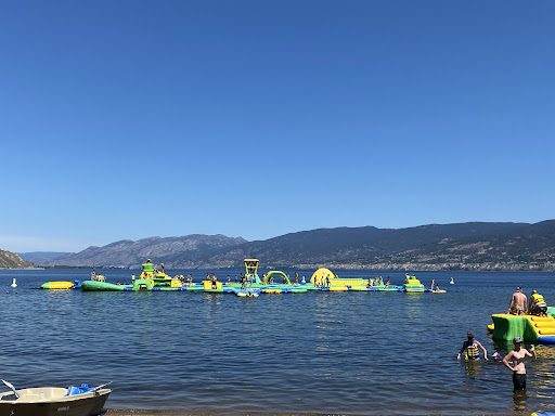 Read moreCame into Penticton last weekend for a day trip. Not Only did I notice while laying on the beach that the life guard wasn’t paying attention very well to the children, but at times I couldn’t even see and lifeguard. Than later that night I had noticed some young adults sneaking into it. I noticed from the side what I assumed was the owner of the floaty(it was) yelling at them. 10-15 minutes later they came out of the water and I had noticed it getting heated. The owner of the floaty had thrown there items into the garbage bin. They couldn’t get there stuff out. I understand that they shouldn’t have been on that floaty, but like I heard them say... there was no sign... and regardless throwing there stuff into a garbage where they couldn’t grab it was one of the most pathetic things...