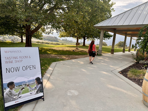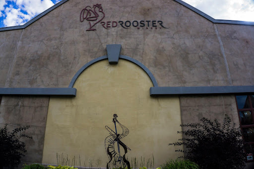 RED ROOSTER Red Rooster certainly ran down the checklist of attributes for a successful winery. Great view of vineyards? Strange sculpture that appears disconnected to the theme of the business? A bistro most people forget is even there? A large tasting room selling stuffed chickens, glasses, bottle openers, and occasionally wine?