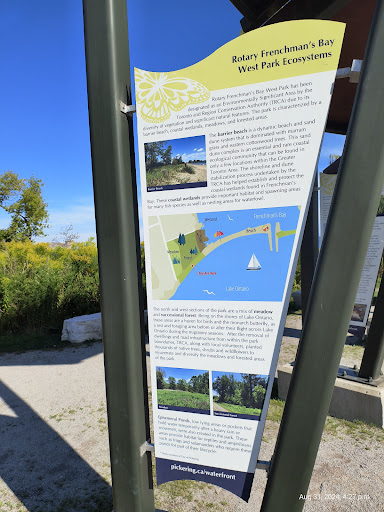 Read moreThe Rotary Frenchman's Bay West Park has been designated as an Environmentally Sensitive Area by the Toronto Region Conservation Authority due to its diversity of vegetation and significant natural features. The park is characterized by a barrier beach, sand bar coastal wetlands, meadows, and climax forest. The barrier beach is a dynamic beach and sand dune system that is dominated by marram grass and eastern cottonwood. This sand dune complex is a critically important and rare coastal ecological community that can be found in only a few locations within the Greater Toronto Area. The shoreline and dune stabilization process that is being undertaken by the TRCA has helped establish and protect the coastal wetlands found in...