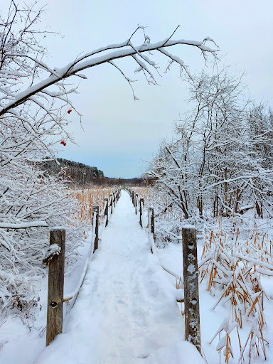 Il y a plusieurs sentiers différents dans le Sentier du Clocher. Il y a deux petit sentier LE MARAIS qui mène a une super belle vue. La meilleure évidemment et celle de la TOUR DE FEU, sur la rue d'en face. Jai adorée ce qu'il on fait comme déco, plusieurs banc fait a la main dans le style "Game of Thrones" et ensuite quelque secteurs désignée ex; le travaille des castors, Le soleil et les planète, des carillons recyclé, décoration...
