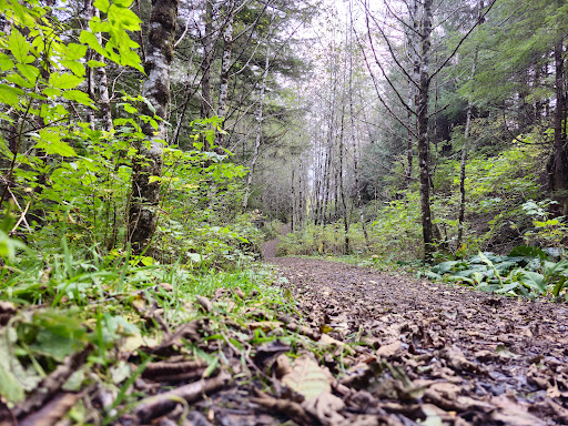 I was a bit disappointed with this trail. We walked it specifically to see the rapids. It was a very nice walk thru the woods on a well maintained gravel path usually 2 to 3 feet wide, with only a few roots, but lots of moss covered trees and interesting ferns and plants. It had rained the previous two days so there were a few small mud puddles that were hard to avoid. It was slightly downhill on the way to the rapids so of course uphill on the way back. We just did an in and out to the rapids, we didn't do the loop, so I can't comment on the rest of the trail.