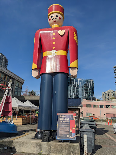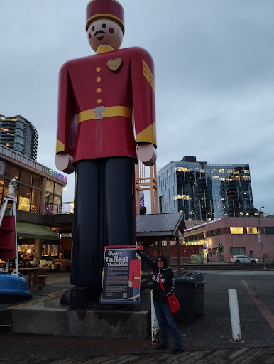 I was passing by river market and I found out the world's tallest tin soldier. It's just next to a market where you can find fresh fruits and vegetables and the area has such a nice lookout. My sister and me got some pictures and enjoyed such a great time, watched the sunset and ate some seafood from the boathouse which is a restaurant with an awesome service. It's a bit pricey but definitely worth the view. Just in front of the tin soldier there is a small playground for kids around 10 years old and next to it there is the Fraser River discovery centre as well. We had the fortune to enjoy everything around during Christmas time and it's so colorful because there are Christmas lights almost everything, so when the sunset is coming, there are a lot of good spot to take pictures because of these lights. It's also an area where you can go enjoy a nice sightseeing, do some exercise, take your dog for a walk or go with your partner for a date. It's definitely a great place to go to visit in case you live far away. Won't be disappointed and highly recommend because everything around is...