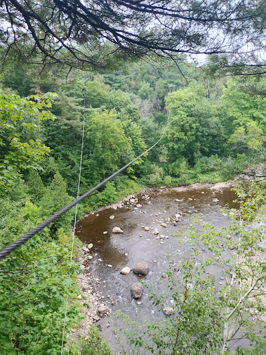 Read moreMagifique site, belle activité mais il y a des ´mais’. Je suis fan de ce type d’activité, j’en ai fait sur differents sites partout au Québec et je n’ai pas vu ailleurs ceci. Voici donc mes constats et piste d’amélioration : (1) ratio de guides insuffisants/trop de clients donc parfois on cherche un guide pour avoir de l’aide et on voit pas, (2) la majorité des guides est très jeune donc manque de maturité pour du service client et manque d’expérience. Par exemple une guide qui est gênée et qui chuchote ses consignes n’aide pas le client à se sentir en confiance et en sécurité. J’ai vu différents guide donner des consignes sans s’assurer que tous aient bien entendu et compris. Autre exemple: je n’ai pas rencontré de guide qui s’assurait de faire un bon contact visuel individuel avec chaque client pour s’assurer que le client se sent toujours bien ou qu’il a bien compris et ce dans la bonne humeur. Je n’ai pas croisé ici de guide qui voulait m’apprendre des chises et me partager sa passion, je les ai perçu très majoritairement blasés même fatigués...d’ou mon impression qu’il y a trop de clients. Idées constructives: diminuer les ratios clients, combiner guide expérimenté+jeune, fournir aux guides des outils structurants: une fiche papier des consignes à me pas oublier (check list) par exempe et ce à chaque étape du parcours, formation service clientèle (parler fort, assurance, contact yeux individuel, chercher feedback du client, etc) Il manquait d’instructions à chaque bloc d’étape de parcours (par exemple: ´ici sur la prochaine tyrolienne elle sera rapide donc il est préférable de vous ralentir avec tel position...attention ici dans les 2 prochains modules on ne pourra redescendre facilement, si vous n’êtes pas à l’aise c’est un bon moment pour descendre...etc). Ces consignes étaient cruellement manquantes tout comme les suivantes avant de partir: les positions du corps qui font aller plus vite et moin vite sur les tyroliennes les positions des mains qui diminue les risques de tournoyer pendant les tyroliennes. D’ailleurs il n’y a pas de carte des parcours sur le web, c’est malheureux ça a déjà existé. Des gants devraient être obligatoire et non recommandé: j’ai vu beaucoup de blessures mineur aux mains (blessures que je n’ai pas vu documenté d’ailleurs, domage ce sont des opportunités d’amélioration de comprendre les menu bobo des clients: à documenter compiler analyser un peu...). Item technique maquant: l’ajout d’amortisseurs aux tyroliennes et idéalement allonger les pistes de reception...