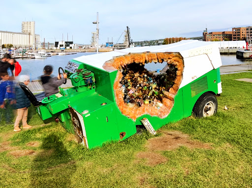 A Zamboni glitters like a massive geode: clusters of crystals, oil-like in their iridescence, have formed in its cavities. In Mia Feuer’s hands, this junkyard vehicle is transformed using unorthodox materials such as plastic recyclables and thrash. The crystalline formations are bewitching, much like the slow labyrinthine trajectory of a Zamboni over ice. Her work provokes dialogue on the perils of resource exploitation and the search for spiritual connection to the elements while navigating a...