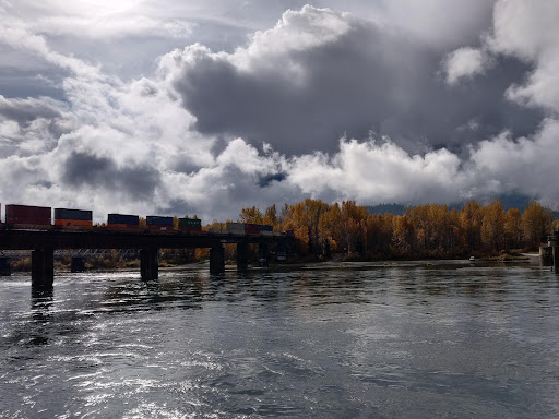 When driving through in the fall, got blown away by the golden color across the river. This is a great spot to capture the Revelstoke bridge and/or the rail with the fall color as backdrop. I will let other more prolific photographers to complete the canvas since I was in...