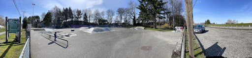 This park is nothing too fancy but it's good enough for people of all skill levels to kill a couple of hours. It has a series of drop-ins connected to a small half pipe and a fairly large quarter pipe along the South edge with a couple small sets of stairs with rails and ramps in the North East corner and a manual/grind platform between them, a small area (for wallrides etc.) to the North West. two separate boxes to skate/ride on, one on the western edge suitable for beginner level and one slightly more advance in the centre of the park in between these is a rail roughly 15 ft long protruding from the ground at about a 45° angle. One thing to be cautious of is I have (rarely) seen some pretty skilled BMX riders ripping through the park and have almost been in a collision or two - but provided that you pay attention to who/what is around you all should be well.