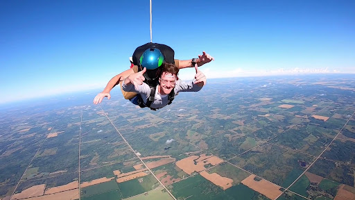 I got the amazing experience of going on the Tandem jump in 2020 from 10 000 ft, and it was truly the most magical experience I had ever had. The instructors and trained jumpers are extremely kind and courteous with everyone they take up, I felt completely safe and comfortable⦠as comfortable as possible in this situation. I was very nervous (as I think anyone will be), and I will never forget the absolute freedom and joy that hit me once the door opened and we got out. Flying through the air, dropping rather, has been something Iāve looked forward to experiencing again since the moment my feet touched ground. Getting to go Tandem for my first jump allowed me to experience everything from free fall, flying the parachute, and then landing in the comfort and safety of someone else, which helped me remain more present in the moment.