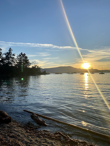 This tucked away beach is quiet and a great place for a swim. It is a great spot to watch the sunset and to watch ferries come and go. Of all the beaches I visited, this one had the warmest water. Not the best for beach-combing except for lots of...