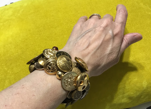 Nice local gallery — bought this painting by E. Sandercock and this unique antique button bracelet