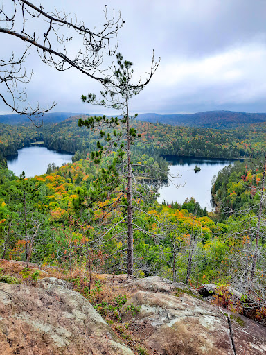 Au début ça grimpe quand même fort...le sentier était humide alors attention aux glissades...par contre la pancarte de départ indiquait 5,5 kms, sur le plan donné à l accueil c était 6,1 et sur mon appli de portable au total 7, 8 et nous avons bien suivi le sentier 13. Nous sommes partis à 11h, pause pic nic au bord du lac puis retour au point départ à 14h. Joli panorama. Belles photos et 1...