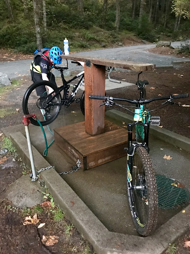 The parking lot was large and easy to get to just off HarbourView Road in Sooke. There is lots of room to park and features clean new put toilets as well as recycling and garbage cans. For bike riders there is also a nice bike wash to clean your bikes after the ride.