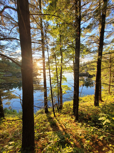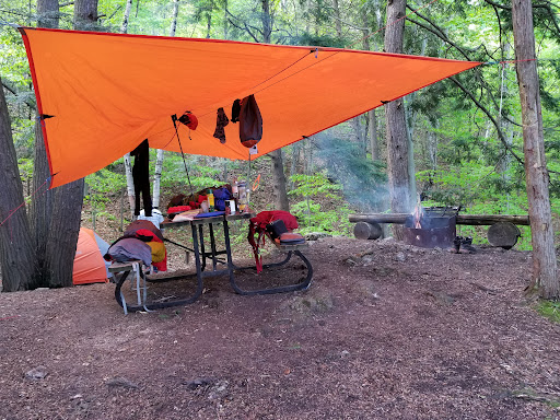 I was recently here for a few days and it was almost great... please note that the park is stunning including the drive up from 401. South Frontenac area is beautiful! I am giving this 5 stars because the nature is amazing and the park did try to make it a pleasant experience for the whole family even though it's the backcountry. So, unlike Algonquin, Frontenac is more glamping into the backcountry because they have bear boxes vs you trying to tie your bag up a tree. Secondly, there are flat tent pads that are 14' x 14' which would fit two tents tightly or there may be space on surrounding grass for another tent if you prefer to be a bit further away from your friends. There is a iron fire pit, a bench and a picnic table as well. My biggest con is that there is little privacy because the sites sit in clusters close together. Also, pictures aren't reliant as to how great a site might be...so I was recently at Little Clear Lake at site 9b and aside from the view, it had nothing else going for it. The water access was terrible; really steep or awkward and the swimming was full of dead wood and weeds. I found a spot between 9b and 9c that was perfect for water pumping. Also in pictures, 9c looks terrible but they have the best swimming/ water access - as soon as my neighbors left, I took advantage of the swimming 😁 Aside from the camping, the hike in took about 4hours (I went from the left side and it was a bit tough but also it was a hot day. ) But on the way back, I went from the right (side of the trail map,) and it took me 2hrs to get to the car.... also was a cooler day, but the trail was easier too! I would go there again, but would think twice about the campsite option next time - I prefer more quite so perhaps a corner site or maybe something off a smaller lake because then you might not have too many families portaging (kids are kids and they will be loud...)