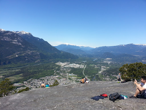 Read moreImpressive views. Please keep in mind just because you CAN do something doesn't mean you will always get away with it. This hike is highly trafficked. If you stay on trail you will see people doing the trail in sandals etc. Please go prepared regardless. With a sprinkle of rain the smooth granite can become very slippery. That said, the trail in much better shape than many parts of the grouse grind due to the stone stairs and drainage which improves the durability of the trail itself. Note the trail from 1st to 2nds and so on direct (vs. Down to the fork and back up) requires climbing some ladders, chains and iron staples (ferratta?) And as a result would not be appropriate for kids, dogs or people with a fear of heights. The direct first peak trail is great for all these but be aware of the edges, and as noted that rain makes...