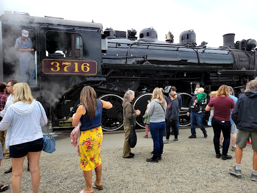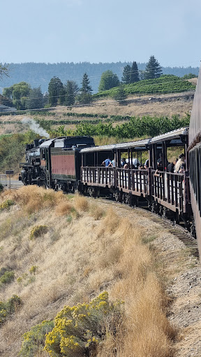 Visiting from England with local relatives. We were blessed with a beautiful day at ~26°. We arrived just after lunch. Lots of car parking space. Minimal queuing - purchasing tickets in advance recommended. There are options within 1. closed carriages (large sliding windows open to help bring the outside in) and 2. open sided carriages which might be a better option on a hot day. Our carriage was very comfortable and the large window gave a nice through draft to keep everyone cool. The wonderful conductor with his microphone in hand, educated us on the railways history. The stories of the prolific bank robberies; things of interest that we might expect to see in the trip including bears. They had been seen in the area earlier in the day. How exciting. They played some good old country music in the background. It was great! The tour lasted about 1.5 hours. With commentary and breathtaking scenery, I'd highly recommend. I thought it was good value for money. Sometimes they have staged 'robberies' acted out and I'd have loved that. There was a bear but it quickly disappeared up a nearby tree however, just looking out for them was also great fun and even the big kids on board were loving it all. At the top of the track at.the half time point the engine swaps around ready for the return leg of the journey. At this point you can get out and stretch your legs, take photos and have a photo taken for you of your group at the front of the engine by one of the crew. All.part of the service amd a lovely momento of the day. In a.nutshell, definitely recommend a visit. Kids and adults alike will love this railway adventure that transports you back in time almost, when hearing all of those great stories. No dogs allowed. Great gift shop Clean washrooms. Friendly and knowledgeable staff. Loads of parking space Reasonable ticket prices Great value for money. Awesome views.