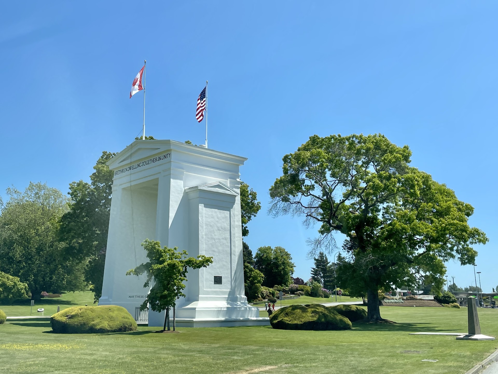 Ā Ā Ā Read moreWe take for granted that the US and Canada are peaceful neighbors, but that wasn't always so, and I can think of a couple of neighboring countries that are less than peaceful. I also can't help but think of how this contrasts with the other end of I-5, Being able to wander back and forth between two countries like one can here is no small thing. I also appreciate how beautiful this place is and what a good job BC has done in maintaining this park. It is well worth the visit, no matter what side of the border you come from. Do watch where you park. If you make the first left into the Duty-Free shop parking, you will have to go to the United States, and all the fun going through a US border crossing entails. Also, if you do park in the actual lot, note that you can make a left turn on BC 99, even if it isn't marked. That's at the second...