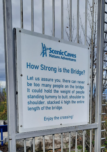 I have mixed feelings about the entire experience at scenic caves. The views are good, however the pricing is. Kt reasonable. They call infants as toddlers and 3 year old kids as youth. Most tourist places don't charge till 5 or 7 years of age (some keep the limit higher). Overall if you are 5-6 people in a family you are spending 150$ and beyond for just scenic views and hiking in the gorge, which in my view is not justified. But it's a private place so they need to make money also, which needs higher pricing for everyone in the group. There are other suspension bridges you can visit for free or...