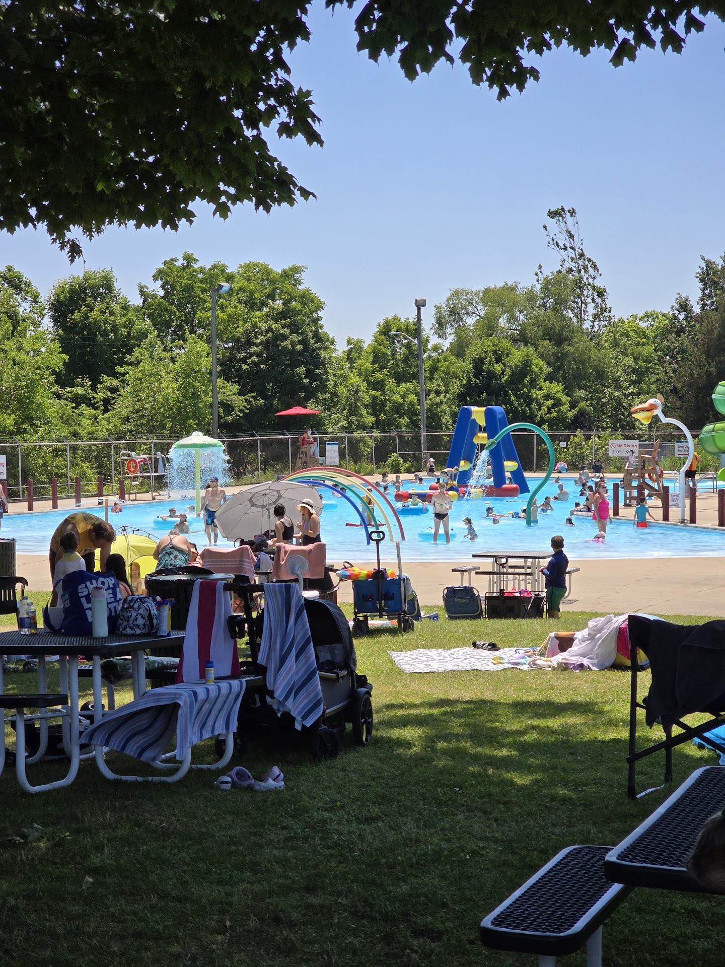 Read moreIt's a great place to bring kids of all ages. Pool has ladders as well as gradual sloped entry. Shallow area great for younger ones with fun spray features. There are two inflatables anchored in the pool for added fun with the first one geared more for younger ones (but fine too for even 12 yr old). Since the 2nd one is more challenging it will keep the older ones busy. Kids with red wristband ( having not passed swim test) are not able to use the 2nd inflatable. Numerous lifeguards in and around water. Concession booth open serving variety items. Get there early enough and you may be able to enjoy park supplied free lawn chairs and inflatable inner tubes. Many shady spots available on grass area. Waterslide is closed for 2018 season but it didn't spoil the fun. Can regain entry with getting hand stamped. Able to bring in coolers. Changerooms don't have private stalls for changing. We have no problem spending an entire afternoon enjoying a picnic lunch, the waterpark and playground located directly outside of waterpark. Pack a lunch and enjoy some...