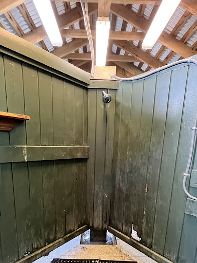 âI donât careâ sums up the experience here. The showers are filthy and cost a fortune. $2 for 2 minutes. There are literally holes in the shower walls between stalls where the wood has rotted away and people can peep through and see you.