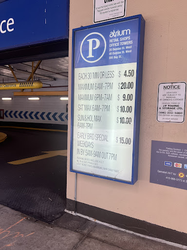 Read moreThe underground parking garage is located just east of Bay Street on Edward Street, one block north of Dundas Street. It sits directly beneath Atrium, offering automated and well-lit access across two levels. It’s open 24/7 and has about 500 spaces.   • It’s connected to the PATH network, giving you seamless pedestrian access to Dundas TTC Station and the Eaton Centre, even in cold or rainy weather.   • EV charging stations are available on both P1 and P2 levels.