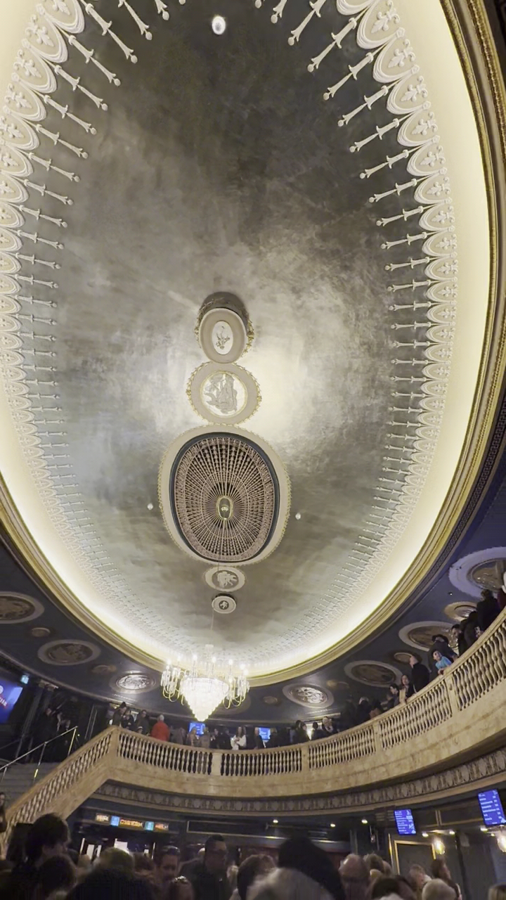The architecture of the theater is absolutely beautiful, especially the intricate ceiling, which adds a lot of charm to the space. The theater itself is spacious, which is great, but unfortunately, the sound quality was lacking. At times, the music was so loud that it drowned out the voice of the singer, who had a beautiful voice. It was a bit disappointing not to be able to hear the vocals clearly due to the overpowering music.