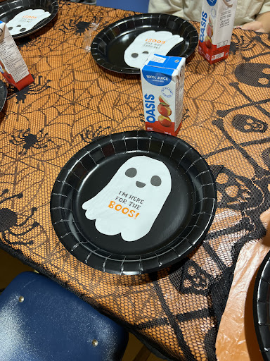 The leftside is is set up & decorated for the kids to eat, drink & have cake. The right-side is set up for the parents to take a break and socialize with the other parents while the kids are at play.