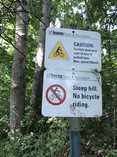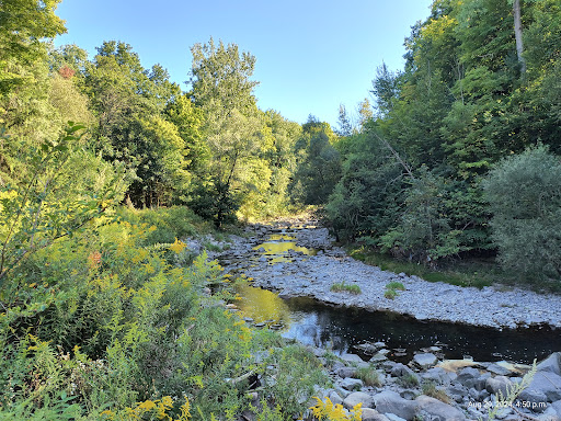 Fab place to walk or ride, from the north at Morningside Park and South at Greenvale Park. There are other adjacent parks and access points, which is fab because one minute you're in your streets and the next you can be on a paved park trail where you hear water, wind and critters, see greenery or colours and animals like deer, and smell trees and flowers. Fab because there are spots where the city has created pretty improvements like the river ladder at one sunlit corner and fab because they have also left spots where nature's power and time have done their things. Check out this dynamic...