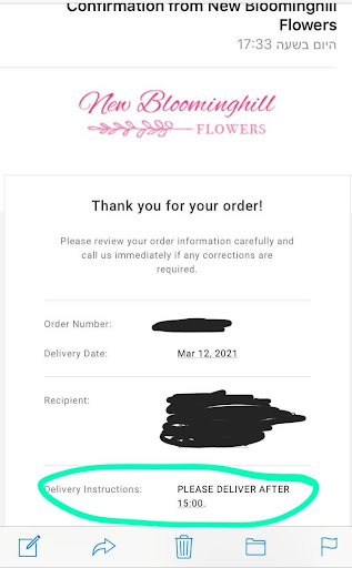 Read moreDO NOT ORDER THEY WOULD RUIN YOUR SPECIAL DAY!! My boyfriend, living in a different country tried to do something nice and send me flowers for my birthday ( don't worry he had a local helper). Delivery instructions clearly said DELIVER AFTER 3, and another email was send the morning of to confirm delivery after 3 as i was busy until 2. She calls me at 1:58 twice, called her back 3 minutes after, she started yelling at me that we don't have apartment number on the order and said to come pick it up myself. i didn't know what it was about even so i went but of course talked to my friend before who showed me the conversations with the store. needless to say i was very upset. when i got to the store and tried to talk to the owner the lady there was SO RUDE! you cannot say anything to her! First the order looks nothing like what we ordered! so she tried to say no i put extra flower, WHAT DO I CARE? you offer something so that is what you should deliver! plus, i clearly saw on her order that its written down in pen to be delivered after 3 and she blank LIED to my face! i mean you made a mistake ok, but take responsibility as the business owner! apologize! offer something to peach the customer.