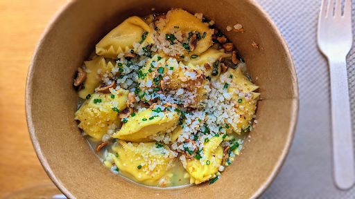 Read moreAs a pasta lover, I was really excited to try this place. They sell fresh pasta made in house, as well as prepared foods (fresh and frozen) and a cooked pasta special of the week. Bucatini and Chanterelles spoke to my heart (and belly) that day so I ordered one to go. It’s made to order and the aroma from the kitchen of melted butter and chives definitely smelled delicious. For $18, the portion was perfect for one. The pasta had a nice consistency, a little bit chewy and al dente. It looked amazing on the surface. However, the sauce/taste was on the bland side. I wish it was way more wet, as most of the sauce/seasoning did not even touch the bucatini (under that top layer) so it stuck together and was quite dry. My walk home was only 5 mins so that should not have affected the quality. Luckily I had some accoutrements at home to jazz it up. Maybe it would have been better had I eaten it on the spot, but I highly doubt it. Better...