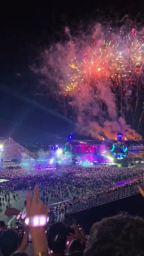 I liked that it wasn't in the heart of downtown Toronto. I couldn't imagine trying to book hotels or getting around before or after the concert there. I loved being able to be outdoors for Coldplay. The space is very open. There was so much room at the venue for vendors, merch tents, food trucks, lounges, water refill stations (AMAZING), and even a ferris wheel!! It was like walking up to a music festival and then heading inside for the main event. I loved that.