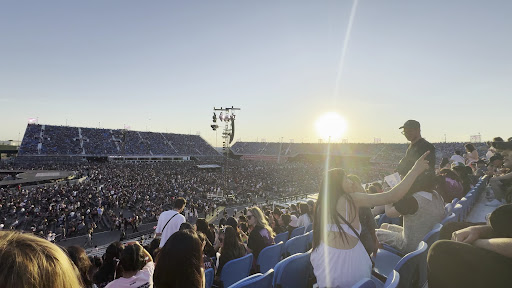 But when the concert started and everyone started standing and jumping, we could all feel the bleachers moving quite a bit. Being that high up made it much more dramatic. It was an uneasy feeling, especially being in the top corner. We also had lighting equipment behind us that was shaking separately from the movement, and security even came up to check on it at one point to make sure it was still strapped in. They noted "its still ziptied, so it should be fine." đł On one hand, people kept saying they were afraid the stands would fall over. On the other hand, it made them jump around more gently, so I wasn't getting knocked into. I felt like I had enough space at my seat anyway.