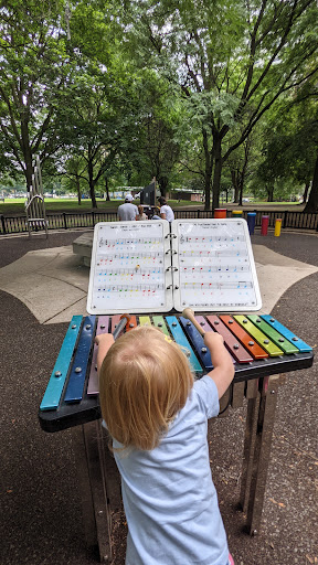 Playground with all categories of equipment; splash pad with sprinklers for the summer, slides and swings for varied ages, sandbox with chalk board and a whole musical section with instruments (these could have better stands for the smaller kids). The park itself has multiple benches and some tables, baseball diamond, ping-pong table and adjacent tennis court. The washrooms are generally clean and stocked on supplies but have limited hours. Due to the popularity of the park it appears the grass is struggling to grow back since the pandemic and large areas are just mud. Overall a convenient spot meeting both the needs of the little ones, the older kids and...