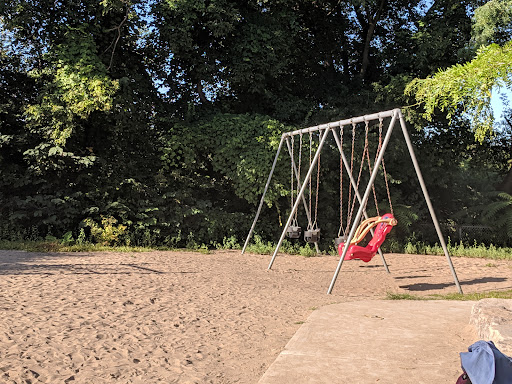 Read moreLovely little playground on sand, fenced all around with a couple of picnic benches. There are slides, a climbing frame, bouncers, a see-saw and swings (including swings for babies/toddlers and one for those with additional needs). Outside of the playground is a splash park and a large grassed area with a football (soccer) goal. Lots of trees, which looks stunning in autumn (fall). A wooden set of stairs leads down to Rosedale Road with a pavement (sidewalk) for pedestrians...