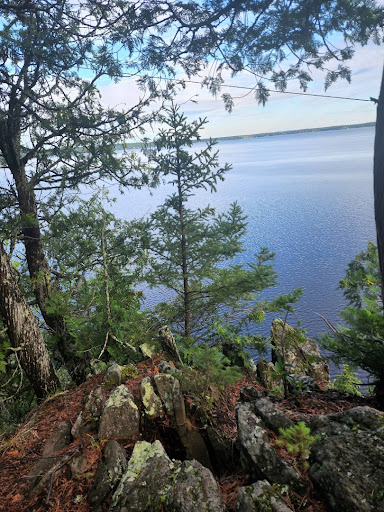 There are areas with high rock walls you can climb, and even crawl into a tiny cave. And large trees, seemingly growing straight out of the rock walls themselves. It's pretty cool. There is much beauty along the trail, although the trail end is pretty anti-climactic. It ends at Little Indian Bay and there is just a small shelter. That's fine though, as we all still felt a sense of accomplishment. On a warmer day, I would have gone for a dip to cool off. And being the deepest lake in the province, the water is cold!
