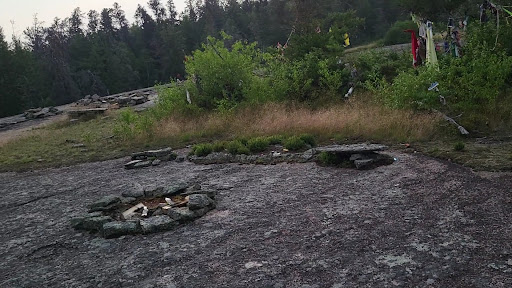 I visited the Bannock Point Petroforms for my first time this weekend. This is a historical site that is a sacred area for Indigenous peoples. From the parking area, it was a short walk through the forest to arrive at a wide open area on the rocky landscape surrounded by forest. There were various collections of the formations made with large rocks that were scattered around the area. There wasn't really a designated trail once you get to the open area, but there were pieces of cloth tied to the trees to guide you through. The formations resembled turtles, humans and snakes and are believed to be prehistoric and left behind by Indigenous peoples long ago. People had left various offerings of cloth, wood carvings, tobacco, plants and coins on a large rock near the trailhead and around the various formations.