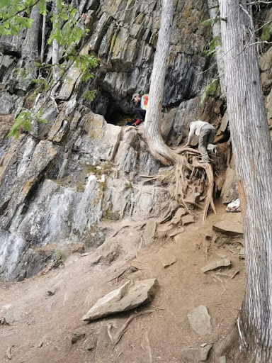 The path itself is very rocky. Sharp rocks jutting out of the trail all along. Indeed, some areas you have to use your hands to climb up the rocks because it is so steep. If you fall anywhere on the trail, you will most likely hurt yourself. Where there aren't rocks, you will contend with large roots that can be tripping hazards as well. So, bring decent footwear, a first aid kit, a good lunch, and lots of water. I went through 1.5 liters of water, and it was a cool day. I also brought an extra shirt, as mine always gets quite sweaty when I wear a back pack.