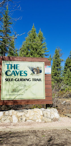 At the bottom the trail splits, to the right the trail heads back to the parking lot. Turning to the left will bring yoi to the lake and cave area.