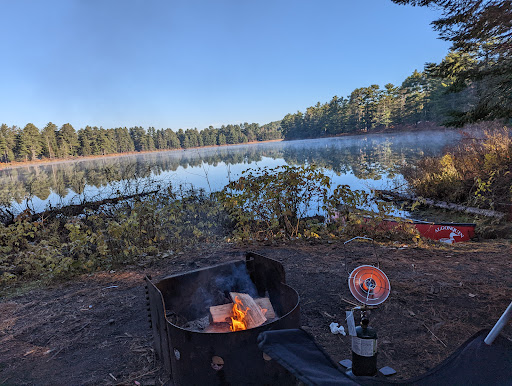 First thing I would note is this lake is fully landlocked with no outlet to other lakes, and is fairly small compared to the other lakes in the vicinity. A 5-minute canoe will take you across the entire lake. Campsite privacy is okay. We stayed at campsite number 90 which is right near the vaulted toilets, so that's actually quite handy. The beaches from the better beaches I've seen in Algonquin. I would say this campground is more kid friendly, there are hydro-enabled campsites available, and some of the yurts look brand new and amazing (2022)! There are some cabins that can be rented as well. Overall we had a wonderful time at Mew Lake, although for a family on a tent with no kids, I think Tea Lake is a...