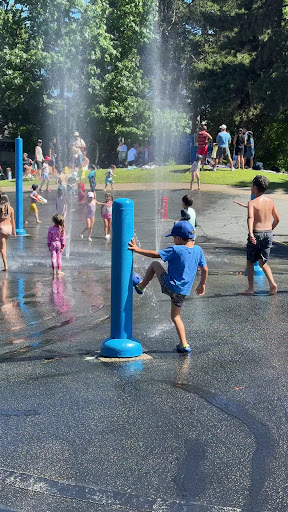Read moreQuite possibly the best free water spray park with a long swirly public slide and two life guards on duty!! Not only that, but there is a nearby duck pond (full of hungry and aggressive geese that steal food lol), a playground for all ages with a manual spinning carousel, a sandbox, a tiny 4-toddler seesaw thing, and a wide low swing. Honestly this place is awesome and it’s also mostly in the shade with TONS of benches and seating areas for parents!