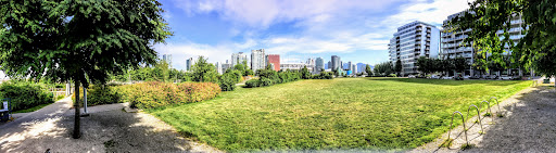 Wonderfully creative landscape design extremely forward thinking with complete rehabilitation & daylighting of salmon streams/water fowl duck 🦆 ponds, football/soccer field , kiddie jungle gym playground with swings & enclosed off leash doggie area (so Fido can run free without chasing the birds!) l love it here. ... I return several times seasonally it’s always different. I love it here - it’s very richly peppered & spiced with artful industrial era artifacts and tracings of old railway tracks, you sneak around & you’ll discover it all in your own.