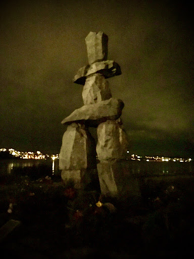 Well worth a look, can accessible using public transport / located at english bay so there are lots of shops and restaurants close by via davie and denman street after a short beach walk/ An inuksuk is a human-made stone landmark or cairn used by the Inuit, Iñupiat, Kalaallit, Yupik, and other peoples of the Arctic region of North America. Originally constructed to communicate with humans throughout the Arctic, Inukshuks are symbols of welcome. The Inuksuk at English bay is built of stacked granite blocks in a human form, This one weighs 31,500 kg. It is built of gigantic rocks and stands 6 meters high. The welcoming figure was made on the Inuit model for the NWT pavillion designed by Bing Thom and "shaped like a five-story igloo" at Expo 86. The figure was sited at English Bay after the fair. The stones were brought in from a quarry in the Fraser Valley and then shaped and stacked by crane and pinned together with rebar. Inukshuks in the north are usually much smaller and the rocks are balanced on each other. They act as sign posts or distance markers that can be seen on the flat horizon. Artist Kanak said, "By a lake an Inukshuk means lots of fish." The figure is a "reminder of the ingenuity of my people in addressing transportation and communications challenges prior to the introduction of modern technology." (sources: M.Farrow, V.Sun, April 24, 1985; V.Province,...