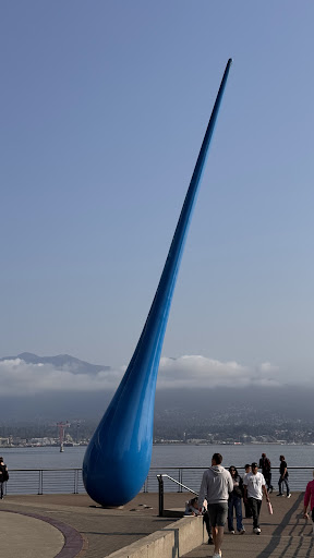 Read moreThe Drop is a striking public art installation located on the Vancouver waterfront near Canada Place. Shaped like a giant raindrop, the sculpture stands about 20 meters tall and is painted a vivid blue, blending beautifully with the sky and ocean background.