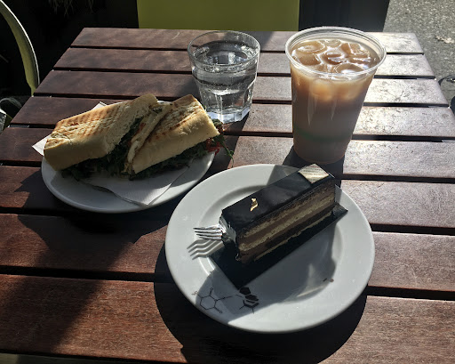 Not a big space, but there is a pretty varied selection of desserts and pastries as well as soup and sandwiches and a full coffee/tea menu on offer. Tables are placed very close together so there isn't much sense of intimacy, but even so I like the layout of the cafe. The tables are all placed near the windows so they get natural light, and there's this one corner that looked really cozy. There's a fenced-off patio area that's also a little cramped but still has those nice fresh-air vibes. Given that they're usually busy, I much prefer the tight seating situation over a scarcity of tables. The appropriately chocolatey tones of the interior are very aesthetically appealing. I ordered: Tomato & bocconcini sandwich: Also included avocado, which added a nice texture and didn't steal the show from the other ingredients, and roasted red peppers, which added little bursts of flavour. Very tasty, a little messy - could have perhaps used a little less aioli to make things from slide around less, but it's not like there was WAY too much as it was. Champagne truffle cake: Delicious! The very dark chocolate ganache coating was heavenly and all in all there was a very nice play of flavours going on here. The inherent sweetness of the cake was balanced out by the bittersweetness of the dark chocolate and the booziness of champagne. Iced London fog: Very memorable! Usually I mostly pay attention primarily to the quality of the tea and not so much the vanilla syrup, but here, in addition to using a very fragrant earl grey, I couldn't help but notice the strong vanilla bean flavour, which was achieved even without using a ton syrup to sweeten it. I'm very impressed because some places struggle to make the iced version of London fog properly unless they use tea powder, but this tasted like steeped tea and was perfect. In addition to the very good food, the staff here were all very pleasant to interact with, and it was a good sign to see many people behind the counter with clear roles to keep organized and on top of...