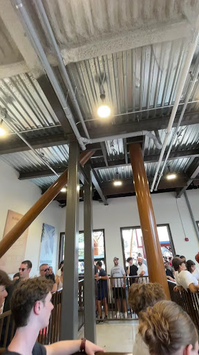 The majority of people left their stuff in the nearby locker (roughly $3) but if you’re stuck standing in line for a couple hours and want to keep something small on you, there’s a place to put things.
