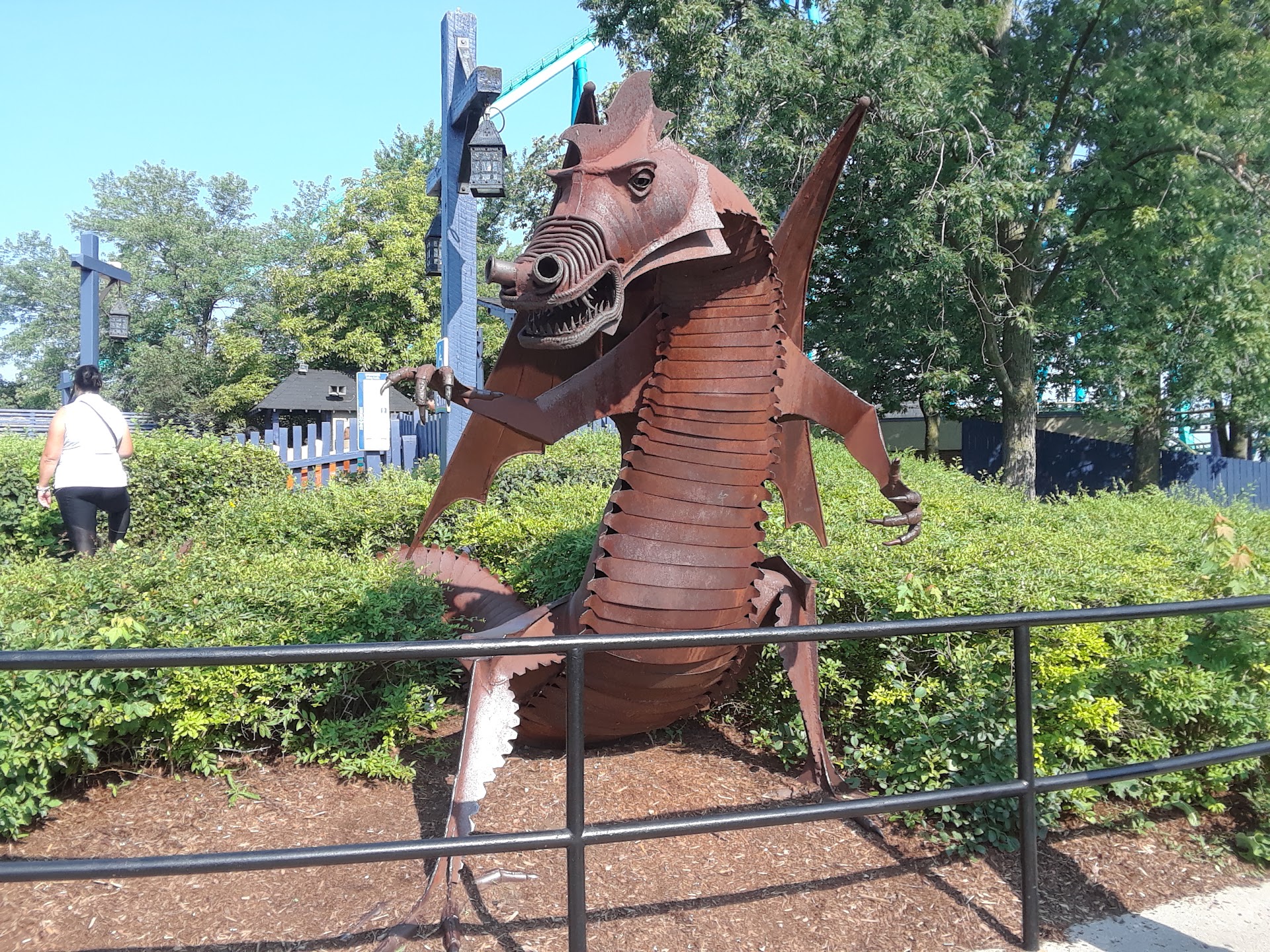 It's another one of Wonderland's roller coasters that is probably not long for this world, ride it before it's gone. Be aware that like The Bat - which uses the same type of train - Dragon Fyre has over-the-shoulder restraints where if the rider is a kid or a shorter adult, their head will rest between the restraints and there may be some head-banging. The g-forces in the loops and corkscrew are significant, keep your head back against the headrest.