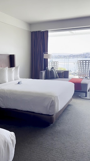 Read moreWe had a lovely stay. We did the Bed and Breakfast package with the Butchart Garden Tour add on. -The view was amazing đ€©! -9/10 staff were kind, friendly and took service to a higher level. Only one evening concierge made us feel awkward/stupid for asking a question regarding room service. -The restaurant was pretty ok. Husbandâs bacon & toast were consistently burnt. One of my eggs benny was under cooked and the other over cooked. -next time we go, and we will return, we wonât be getting a room close to the elevator. We could hear it any time anyone was using it. So it made us think the sound proofing wasnât super. -We did find dried/not cleaned âbodily fluidsâon the curtains. Let me add that we witnessed the house keeping team clean other rooms. They were extremely thorough! I was impressed that they take the mattress right off the frame, they clean the windows, they mop the decks. Even though we found something disgusting, I wouldnât hold that against them after seeing how they clean. -The linens were brilliant white -The towels were that supper fluffy, ultra bleached clean feeling. -The free soaps were the loveliest scents!! Citrusy and herbal and very refreshing. My husband couldnât wait to wash with it or wash his hands enough with it. -the sliding glass door to our room was impossible for me to use. My husband could open it. It needed some grease. -TV had ALL the channels we could ever think of needing. Great verity. But we used our laptops 95% of the time. -Free Wifi was included in our package -our room had a fridge. Extremely small, but no extra cost to use. In room coffee/tea (not the restaurant or room service) they could have been more generous with the coffee (the Nespresso pods). The tea they offered was terrible. Only four creams offered. Iâm sure if we had got room service every day this wouldnât have been a problem, but we also didnât have the money to tip the room service every day. Our average per day rate was $680.00. I felt for that average per day room rate the house keeping tip should have been included. The gratuities were already included (18%) for everything else. We verified this when we first checked in. -we didnât have much time to explore the garden they have. Our room over looked it. Itâs beautiful. -we were always rushing to make it to the pool. Pool closes at 10pm. -we witnessed a couple of conferences being held. Weâre not sure but maybe a wedding was being held there. We definitely met the bride and groom. They looked like they enjoyed their stay and their wedding.đ„° Made me think we should get our vows renewed at Laurel Point Inn. -I really enjoyed the paintings, art work and sculptures all over the hotel and restaurant. A lot of First Nations art work and I think some Asian art (but I could be wrong on that). -they were doing some kind of window replacement around the hotel and we hardly noticed any construction noise or work. We did meet up with a team of six and they were the sweetest, goofiest guys ever! They even explained to my husband how they are removing the glass and safely breaking it, because we were hearing this crackling noise and couldnât locate it. He said it was the glass in this garbage can. And sure enough it was this massive pile of broken glass. And then he (in a fun tone) explained how they remove it and THEN break it safely. Seemed like they enjoyed their jobsđ. -Iâm glad we did the Butchart Gardens add on, but I would NOT recommend. Average price to get in is about $40 or $50. Takes about 4 hours to get through. The other visitors were rude. Quite a few were ruining the experience for other visitors. Lots of teen age men yelling. A lot of Indian tourists were walking shoulder to shoulder disrespecting women and forcing people like me to either get stuck by them or others get pushed over and off the walking path in to the flowers/plants. These visitors made taking pictures impossible. They were freaking animals. Oddly enough, THEY screamed regularly âSTUPID PEOPLEâ! I am disappointed that the staff didnât eject them from...