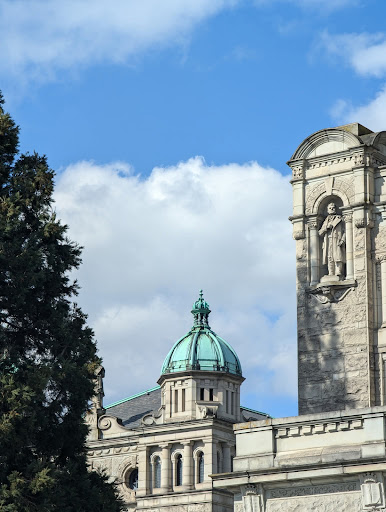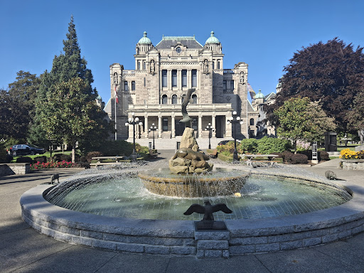Victoria Centennial Fountain, also known as Back Fountain or simply Centennial Fountain, is installed outside the British Columbia Parliament Buildings in Victoria, British Columbia. The fountain was designed by Robert Savery in 1962, and commemorates the four colonies and territories that formed British Columbia. The bronze sculptures of a bear, eagle, gull, sea otter, raven, and wolf represent the province's geography and history. British Columbia was formed from four British Colonies and territories: The Crown Colony of Vancouver Island 1845 The Dependency of the Queen Charlotte Islands 1852 The Crown Colony of British Columbia 1856 The Stickeen Territory 1862 Plaques on the fountain tell the origin of their union to become the British Columbia of today. The animal symbols are those from which all Indian Societies obtained their main totems of the four areas. The first impetus to exploration and settlement of the Pacific Northwest was provided by fur traders. The rare sea otter drew hunters to the North West coasts. Thousands of skins were taken by fur hunters of many nationalities. The sea otter has been chosen as the theme for the fountain centerpiece. The Bear (Interior Indians) Gold on the Frasier and Thompson Rivers brought thousands of miners to the mainland. In 1858, to ensure British sovereignty, the Crown Colony of British Columbia was created and formally proclaimed at Fort Langley on November 19th. Its boundaries were progressively enlarged until by 1866 all British territory west of the Rocky Mountains was united under the name of British Columbia. In 1871 this Colony joined the Canadian Federation as the sixth province. The Raven (Haida Indians) The Queen Charlotte Islands had been visited by Spanish, French and British, but were not named until the sailing ship “Charlotte” charted them in 1785-1787. Queen Charlotte was the consort of George III. No settlement ensued until rumours of the discovery of gold and possible American occupation led to the appointment of a Lieutenant-Governor (Sir James Douglas) in 1852. This dependency became a part of the mainland Crown Colony of British Columbia in 1858. The Wolf (Tahltan Tlimeit) Following the rush to Fraser River in 1858 the miners pushed northward to the Nass, Stickeen and Peace Rivers. To provide for government of the region the Territory of Stickeen was created in 1862. It survived only one year when a redefinition of the boundaries of British Columbia made it a part of the lower mainland colony. The Eagle (Kwakiutl, Nootka, Salish) Vancouver Island, first occupied for Britain by Captain James Cook in 1778, became a centre for the fur trade. Named after Captain George Vancouver, the Crown Colony of Vancouver’s Island was established in 1849 to buttress British sovereignty on the West Coast. In 1856 representative government was instituted and a Legislative Assembly elected. It was united with the mainland colony of British...