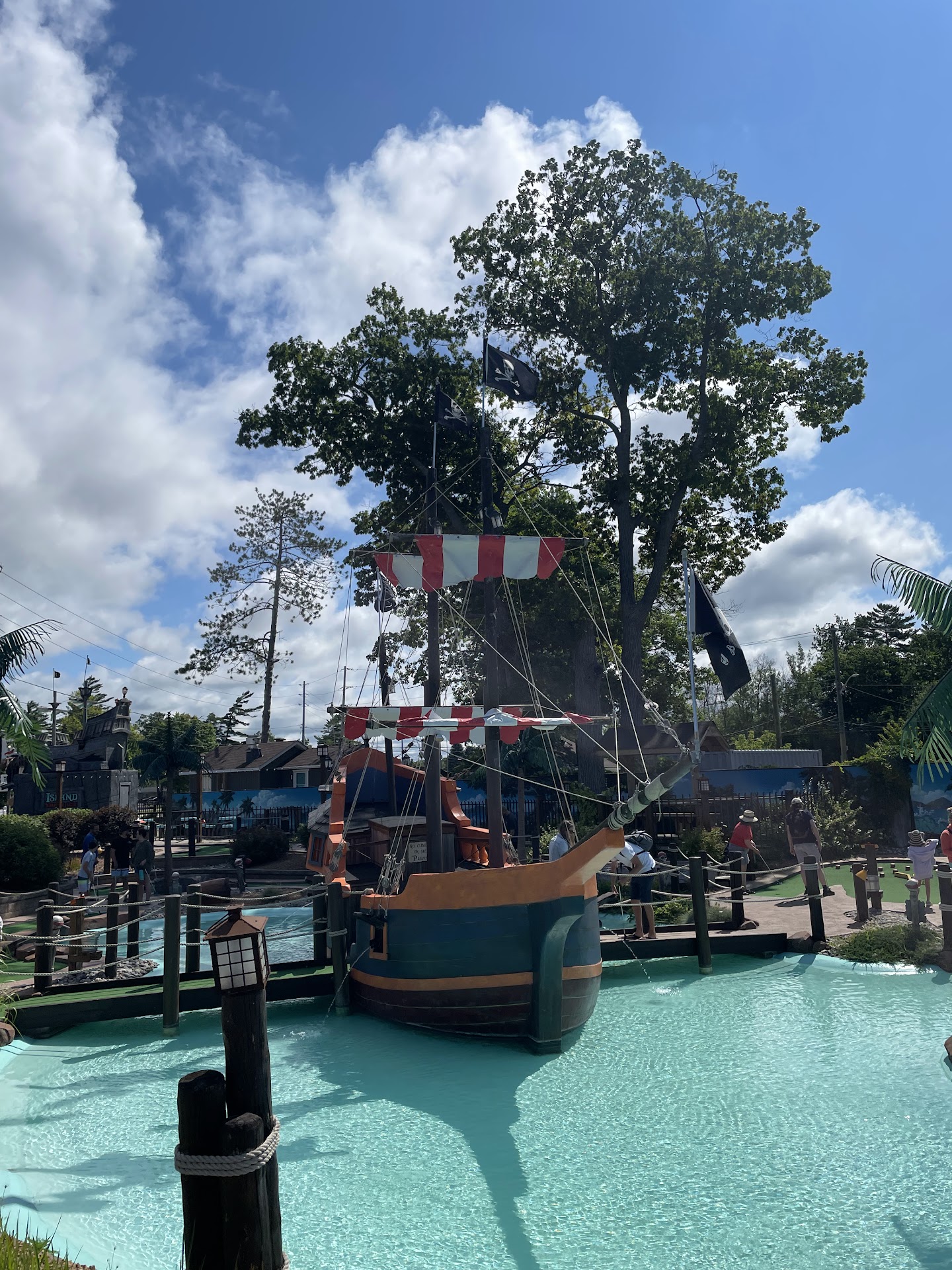 In Wasaga? Great time with the family. Clean well kept, fun design, we enjoyed it a lot. The only thing they could of done was make it a little more challenging, some of the holes were very easy. But we still had a great time, love the last hole and how you can win a free game, nice plus. Skull Island was different from any mini put that we have ever been to. It was imaginable and exciting for the children as well as fun for the adults. The course had many creative obstacles which were inventive and original. The staff were friendly and kind. I would recommend Skull Island to everyone! Skull Island Miniature Golf is tropical paradise. The Pirates have been marooned on Skull Island and are guarding their treasures. Their ship can be boarded, but beware, one of the pirates is not far away on his raft. The park is enclosed with beautiful murals of the Caribbean, with music playing, palm trees swaying. After adventuring your way to the eighteenth hole, you may be lucky enough to be awarded the Pirates treasure (FREE GAME) if your aim be dead on. This lost island world class mini golf will lure you in, providing daytime and night time entertainment for the...