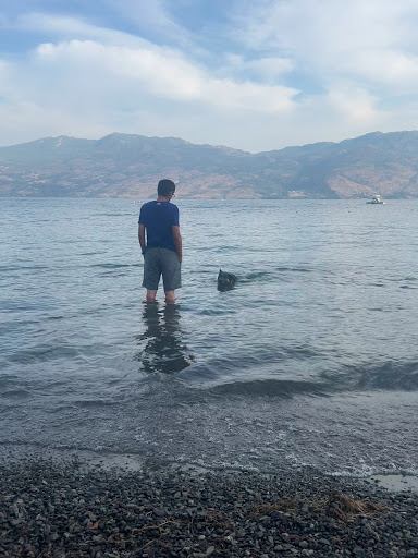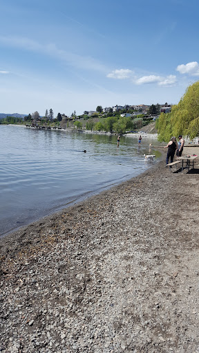 Busy dog beach and human park with limited parking and dog area. Lots of human and dog activity strolling on the paved path next to the lake but the actual dog beach is fairly limited with two areas separated by a creek. Recently they put up a fence on either end to prevent dogs from running off onto the pedestrian path. If your dog loves the water, they will totally love this place. If you are looking for a little more dog running space, you might prefer the city dog park up Gellatly (poorly advertised and marked) in Westbank at Town Centre Park behind George Pringle School. The adjacent area is for humans with dogs on leash with a picnic area but expect dogs everywhere on an off leash. Go further south and there is the pier and humans enjoying swimming. No commercial development there, so bring your own picnic. Super busy...